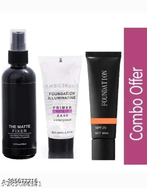 Face Makeup Combo (Fixer | Essential Oil| Loose Powder | Concealer | Lipstick | Eyelashes | Blender Puff | Inflable Primer| Foundation | Makeup Combo |